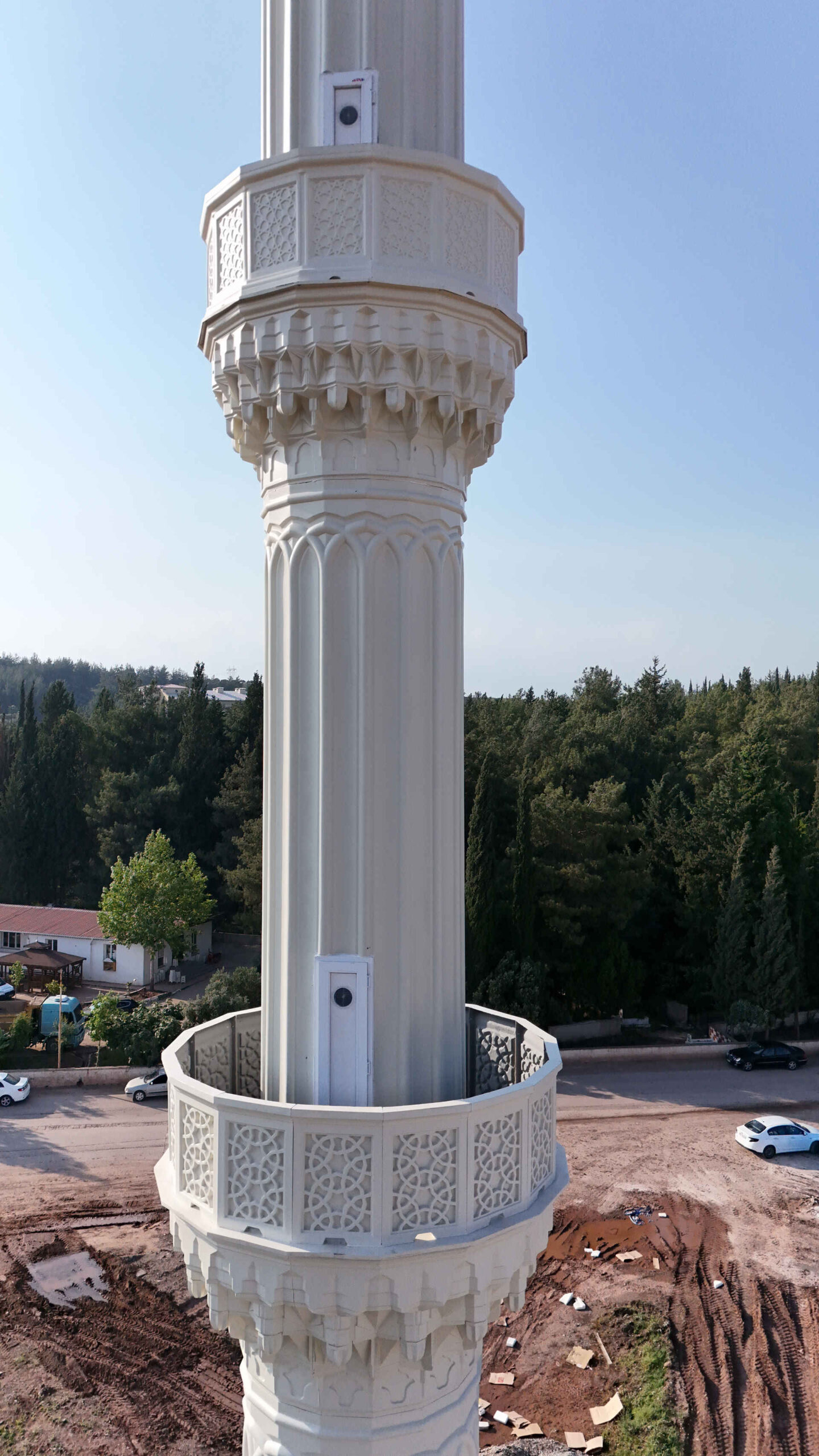 Merkez çelik minare uygulamalarımız arasında özel bir yere sahip olan bu proje, hem görsel bütünlüğü hem de mühendislik detaylarıyla dikkat çekmektedir. Ürettiğimiz ve montajını sağladığımız bu yapı, deprem ve doğal afetlere karşı dayanıklıdır. Alanında uzman bir minare ustası hassasiyetiyle işlenen detaylar, camimizin silüetine modern ve zarif bir dokunuş kazandırmıştır.